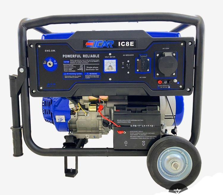 موتور برق ۸ کیلووات ایکار مدل EICAR IC8E یک موتور برق بنزینی تک فاز با توان حداکثر ۸ کیلووات و توان دائم ۷ کیلووات است که با استارت الکتریکی یا هندل روشن شده و دارای سیمپیچ مسی، تکنولوژی تثبیت کننده ولتاژ (AVR)، چرخ و دسته برای جابجایی آسان، و سنسور سطح بنزین است []. این مدل که با سوخت بنزین کار میکند، برای کاربریهای صنعتی و خانگی مناسب بوده و جزو موتوربرقهای تک سیلندر قوی بازار چین محسوب میشود